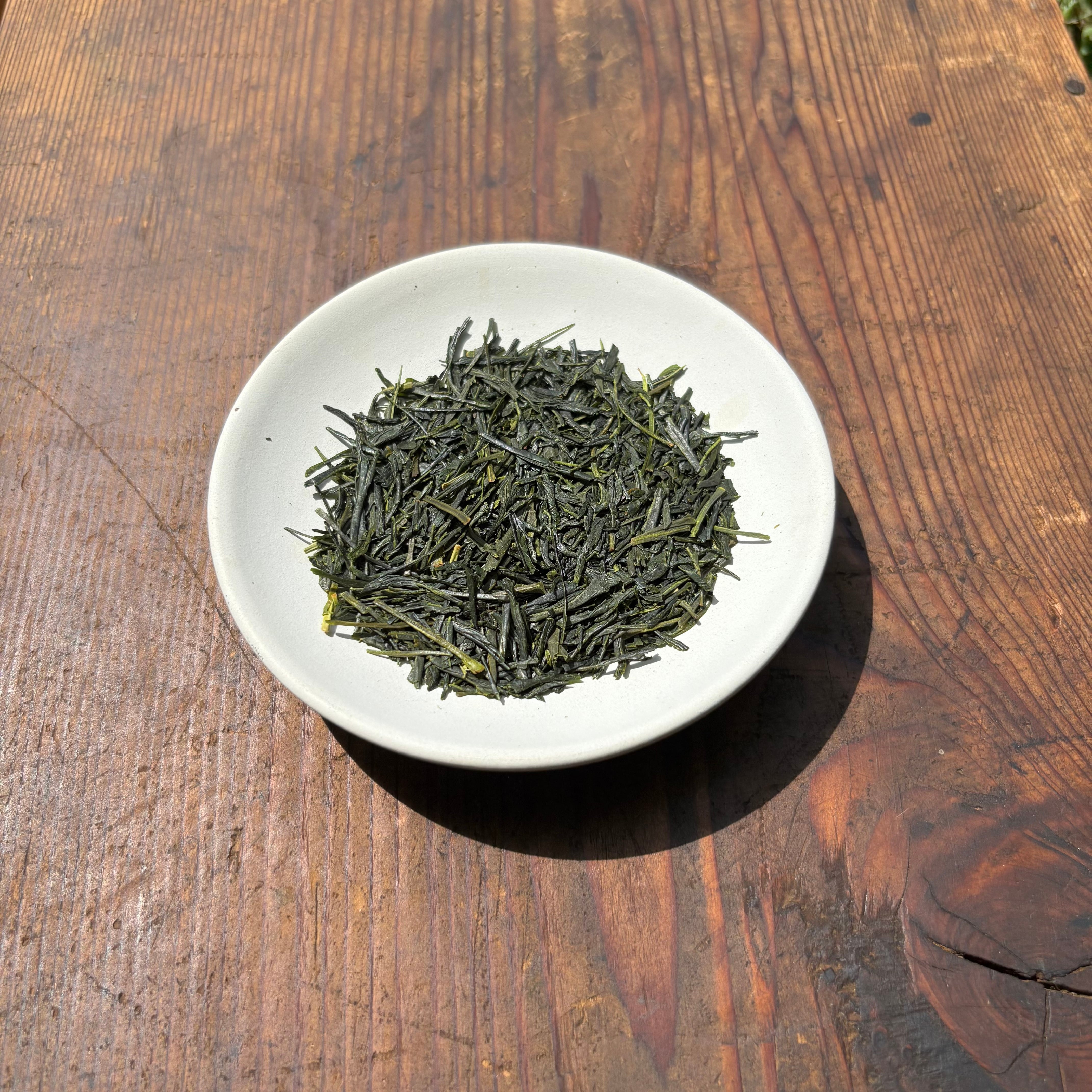 一年に一度しか採れない特別な一番茶の煎茶です。寒暖差の激しい山間の環境に恵まれ育った茶葉は繊細で豊かな味わいを育みます。お茶の木は冬季に栄養分を蓄え温かい春になると、甘味・旨味成分であるテアニンがたっぷり含まれた新芽が成長します。青々とした爽やかさの余韻を愉しめます。農薬一切不使用で育てた自園自製の茶葉です。